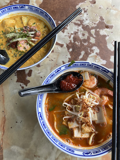 It’s a classic local kopitiam, offering a variety of dishes like noodles, rice, and other options. When we arrived, the place was pretty crowded, but there was an uncle at the front, possibly the owner, helping to organize everything. He asked how many people were in our group and quickly arranged seats for us. Each table has a number, so when you order and pay, you just give your table number, and the food will be delivered to you. For example, we sat at table 17, so our orders were brought straight to us once ready. The uncle was incredibly kind and helpful. Even though I hadn’t asked him yet, he noticed that I looked confused while trying to find where to order drinks, and he immediately offered directions, explaining where to look at the menu and place the order. It was such a thoughtful gesture! We ordered a Nyonya Laksa and a Prawn Noodle. The Nyonya Laksa (small) was RM7, and the Prawn Noodle (small) was RM8. If you’re feeling extra hungry, you can upgrade to the large for just RM1 more. Both dishes arrived quickly, and I have to say, they were really tasty! The Nyonya Laksa had bihun as the base, with tofu puffs, siham, two medium-sized prawns, half a boiled egg, fish cake slices, bean sprouts, and a wonderfully rich curry broth. I forgot to ask them to leave out the siham, which was my mistake, but it didn’t take away from how flavorful the dish was. For RM7, getting two prawns of that size was quite a good deal. As for the Prawn Mee, it came with prawns, fish cake slices, kangkung, half a boiled egg, bean sprouts, and slices of chicken. The flavors all came together really well. They also provided a homemade prawn mee chili sauce on the side. Interestingly, instead of putting the chili sauce on a small dish, they placed it on a soup spoon, which seemed pretty eco-friendly to me. I’ve seen other places use separate small plate for the sauce, but this approach reduces the need for extra dishes. If you prefer a spicier kick, you can mix the sauce directly into the broth, which really enhances the flavor, or you can use it as a dip for the prawns. We also ordered a Kaya Butter Toast and a hot coffee. Together, they cost RM5.50. The Kaya Butter Toast is a must-try—crispy and fragrant, even when it cooled down a bit, the toast remained crunchy. The combination of the kaya and butter was just heavenly. As for the coffee, it was decent but nothing particularly special—just your typical cup of coffee. Overall, it was a really pleasant experience. The food was great, the uncle was super friendly, and the environment felt authentic and welcoming. If you’re looking for a breakfast or lunch spot, I’d definitely recommend...