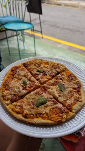 Read moreLovely place. Very welcoming. They have vegan food here. The focaccia is very tasty, and the vegan pizza was nice too. The passion fruit sorbet was very nice. Service a little chaotic, mentioned a few times that we want the vegan options and then we were asked if we want honey for the tea. We also got a small ice cream cone biscuit which the tea which I doubt is vegan. Asked if we can have the sorbet whilst we wait for the food, but we got it at the very end. Had to wait a long time for the tea as well. Everyone was very friendly and the food and atmosphere was lovely. There is a small art exhibition upstairs...