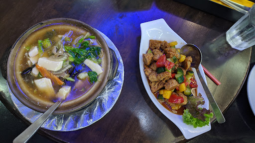 Read moreWe had lunch here and thought the food was nice and ok value, the staff were friendly and welcoming and there was good air-con. When seated we were asked if we were vegetarian, we replied vegan and we were assured they would veganise anything on the menu for us which we thought was a nice touch. We had the braised tofu set meal which comes with the black bean and lotus soup (delicious) and rice - huge portions and a nice light flavour to everything. Also had the sweet and sour 'chicken' which was nice too. Altogether I think we paid 45rm which isn't too bad. Recommend if you are vegan, they were happy to...