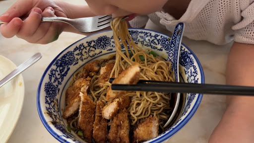 Hainam Style Pork Noodle (dry version) : the gravy leaned slightly toward the sweet and salty side, which my children absolutely loved. My 4 years old managed to finish an entire portion! However, the fried porkâs coating, made from smashed bread remnants, was too dry for my liking. It wasnât my personal favorite.