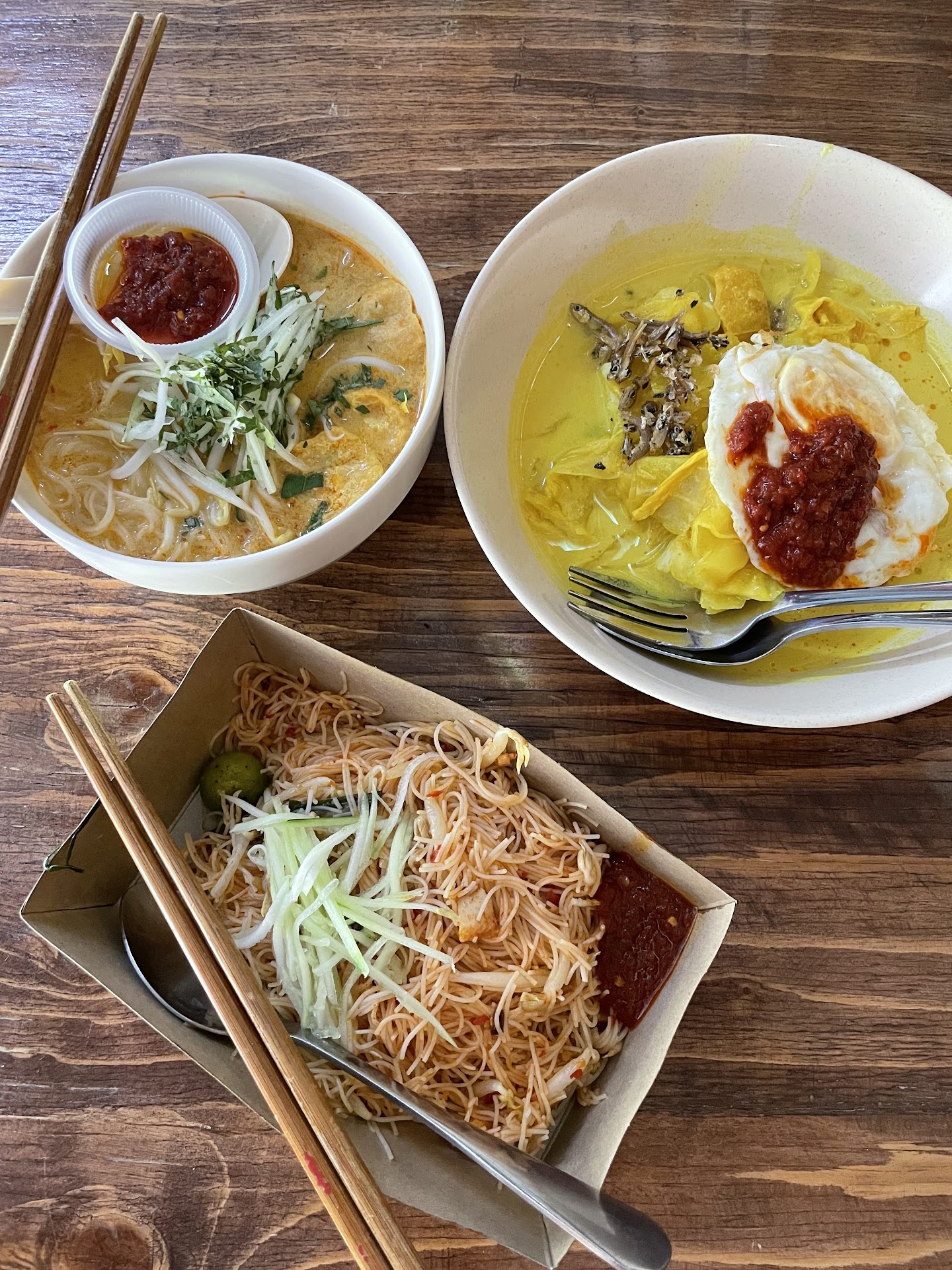 They serve Lontong, Nyonya Laksa, Nasi Lemak, Mee Siam, Chendol, etc.