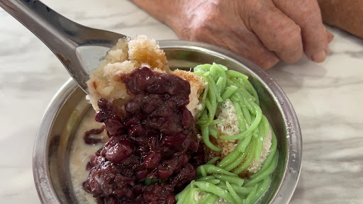 The cendol had a unique flavor, reminding me of an Indian-style cendol with a slightly salty taste. I personally enjoyed it. The second dessert was mitaibak, a lou shi fan-style dessert served with ice. It was mildly sweet and refreshing, making it a good choice for a hot sunny evening, though it wasn’t my personal favorite. The hot dessert, red bean soup with sweet potatoes (番薯), was the sweetest among all the desserts we tried.