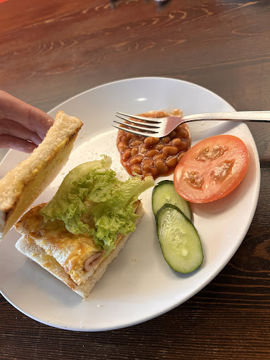 Toast bit over toasted I would say, and the hot drink not as expected. I can see there is 1 customer sitting at two tables, so one family saw no place for dining and left. Hope can improve the taste first.
