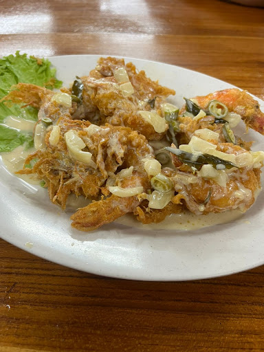 Great food, spacious area. Service quite fast. I recommend masak sambal, very delicious. We ordered sotong masak sambal and it was superb. We also ordered ikan siakap masak sweet sour, quite okay but better with the sambal dish. Price I think quite okay considering we don't have to travel far. We took 2 plates of pari, several kembong, 1 big siakap, lots and lots of big fat crabs (2 large/long plates of ketam) masak butter milk, 2 jugs of drinks, 1 nasi goreng and 2 bowls of white rice. Took several other dishes. Total was RM 461.00 for 10 people.