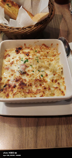 I highly recommend the baked cheese pasta and mushrooms Alfredo. You won't regret it! Very flavourful, can taste each ingredients. Try to the garlic bread too. Not like other garlic bread outside, this is very crunchy and strong taste of the garlic. Good! The Ala Carbonara is quite average to me. Not as flavourful as others.