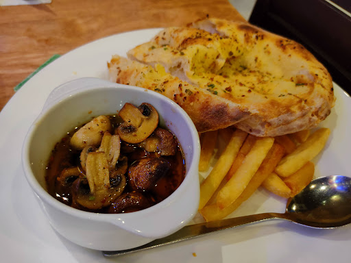 Read moreFood quality drastically changed to worse compared to previous experiences. Despite that, we experienced a terrible customer service today. Ordered a pint of beer which only came after main course. The waitress who took our order, served our food and drinks while talking on the phone which seemed quite rude to us. On top of that, no waiter around when we needed assistance. All they were doing was standing at the counter and chit chatting. We had to wait until the next food to be served to ask for extra sauce. All we asked was mushroom sauce, and we got mushroom soup in the ramekin. By the time we finally caught a waiter’s attention to change the sauce, we almost finished our food. After this awful experience, when we realized the cheesecake we ordered was billed even when it wasn’t served. So when we asked one of the waiter, instead of checking first, he insisted the cake was served. After ‘checking’, when they realised the mistake was on their side, the same waitress who took the order just returned the money. No courtesy to even admit their mistake or to apologise. When I asked her is this how they treat customers and no courtesy to apologise, she can even reply me saying ‘ we did not want to ‘accuse’ you without checking first’. Very bad experience this time around , through out all the visits there over the past few years. This is the perfect recipe to lose regular...