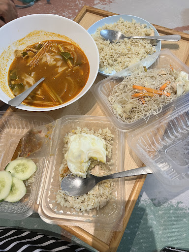 Tiga jenis makanan, kuehtiaw tomyam, nasi goreng cina telur mata, bihun goreng singapore. TAKBERBALOI & JAUH BEZA DENGAN GAMBAR. PORTION NOT CONSISTENT! Hirisan isi ayam taksampai pun 7-8 hiris dalam kuehtiaw, nasi goreng & bihun. Seekor udang/sotong pun xde. Bawang je banyak. Kuantiti kuehtiaw & bihun sangat sedikit. Kalau takeaway, lagi sikit portion. NOT...