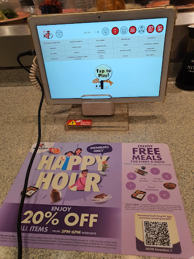 Shushi King, cleanliness is very very bad, staff is not friendly and helpfull. Waiting time for the food to be prepared also so long eventhough not many people.. the presentation of the food is not attractive.. there are food that spill out on the moving tray for long time, no one clean it until i told to the staff to do so...
