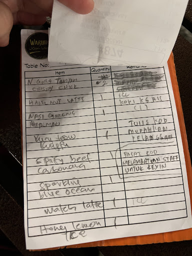 Salam. The food is good but the service from the staff is worst. The staff should respond politely when i suggest to them to use simple code when ordering menu. In my case, customer needs to write the food’s name (NASI GORENG CRISPY CHICKEN BUTTER) instead of NG01,NG02,NG03..other restaurant use this way to make it easier to customer to write down what they want to eat. So i suggest to them to use simple code instead of full food name. But the way they respond makes me dissappointed. They wrote down “PAKAI KOD MELAMBATKAN STAFF UTK KEYIN”.. as a business people, u should tell your staff to respons politely. They should not write down their respond at that paper,they should come to us and say “ok i will take this opinion and tell the upper management”. Thats how a business works. Please change the behavior. When i finished eating,they never say thank you when i walk in front of them. Please, monitor your staff and teach them how to treat the...