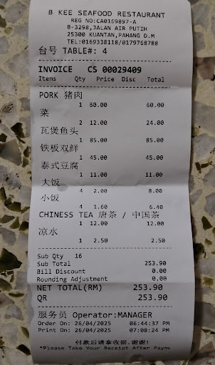 Read moreHad one experience of dining here and will not return. Brought fish here and ordered for plain steam fish. The dish came out like a plate of Soup with fish in it (already a substandard cooking but this is not the main reason), and guess what happened once we tried the fish. We knew how our fish was supposed to taste. Don't try to deceive Kuantan folks (we grow up...
