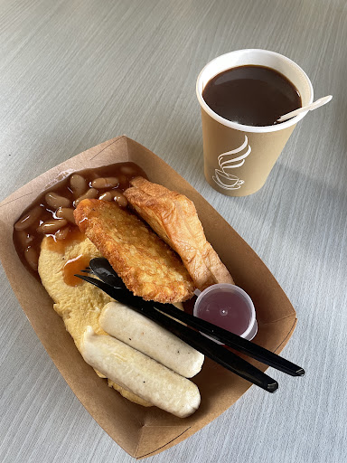 • Meal Composition: Includes toast, sausages, a French-style omelet, baked beans, and hash browns, paired with a charcoal fire coffee. • Price: RM12.50 for the full meal including the drink. • Taste: Delicious; well-prepared, suggesting an experienced cook. • Ideal for Light Breakfast: A good alternative to traditional Nasi Lemak. • Service: Quick preparation, with a waiting time of about 5–10 minutes depending on the queue. • Ambience: Beware of mosquitoes, especially if visiting with babies or kids.