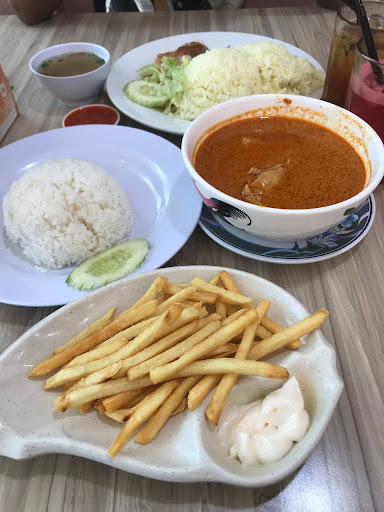 I had the pleasure of trying out this place for my meals for the first time, and I can’t say enough about the lovely atmosphere! After scanning the QR code, I ordered the 'Nasi Ayam Kari', 'Nasi Ayam', some crispy French fries, refreshing watermelon juice with no sugar, and a nice cup of Teh O. I genuinely enjoyed every bite and sip! The 'Nasi Ayam Kari' was a bit milder, which I liked, and the chicken curry was creamy and delicious. The 'Nasi Ayam' was fantastic too!