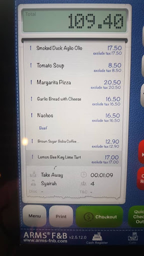 Did the take out order from this cafe, went there for the first time and it was super disappointing.. I got a “rock” margarita pizza, non edible beef nachos, and watery tomato soup.. I hv to literally throw them away.. I hv wasted around RM60 for these food. the smokey duck spaghetti taste ok tho even though it is super oily. The boba drink was not to die for. Feels like got scammed by this cafe.. Really not recommended.