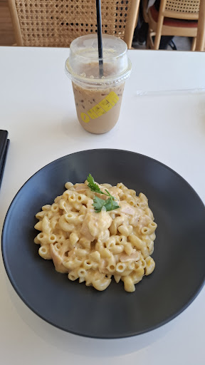 Food Quality I ordered the mac and cheese, which was unfortunately underwhelming. It lacked vibrance and flavor. Adding colorful ingredients like mixed bell peppers or cherry tomatoes could enhance both the presentation and taste. Additionally, I had a latte that tasted flat and could benefit from a richer, more robust coffee flavor.