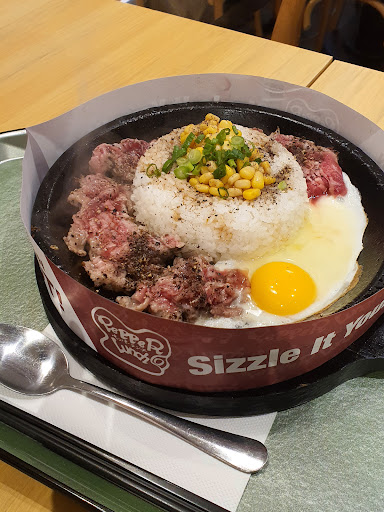 Read moreThere were not many people despite being a Saturday afternoon so the waiting time for our food to arrive was not too bad. We ordered one Beef Pepper Rice (RM26.90) and one Cheesy Omelette with Beef (RM38.90), it also comes with a choice of curry or creamy brown sauce for the cheesy omelette dishes. We also made one of our orders a set by topping up a few ringgit and it comes with a drink along with a side of your choice. It was a little challenging to call a waiter but it was not a huge concern for us. However, I was surprised to see the meat portion of the Beef Pepper Rice since I felt it was too little for the price. As for the taste of our meals, they were delicious. To get the full Pepper Lunch experience for your pepper rice, do keep an eye out for their seasoning guide from the television. Overall, it was a great experience but it is definitely on the pricier side since it is located...
