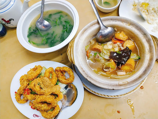 Underrated restaurant. We just randomly choose one restaurant and it turns out a nice one. The service from the lady boss is good, checking from time to time the tea or whether the food is enough. The seafood tofu claypot is good, salted egg squid is not bad but I think smaller size would be nicer. The spinach vege soup also not bad, it would be better if added goji berry. For 3 dishes plus drinks and rice just less than RM60. All food prices are stated...