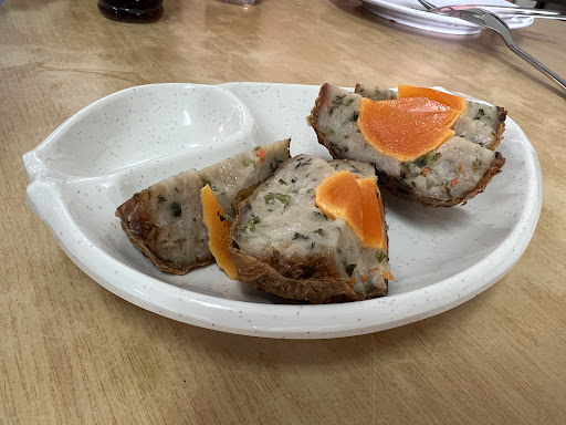 ◾Deep fried tilapia with salted egg sauce - they fillet the fish meat leaving the bone still attached to the head; deep fried everything and then played the fish after stir frying with salted egg sauce. Beautifully presented, sweet & savoury + spicy & crunchy dish. ◾Stuffed meatballs with salted egg - not many restaurants actually still serve this dish due to the tedious process and the long time to cook this. However, this restaurant still feature this item in the menu which made me a happy boy. ◾Taufu Egg - one of my favourite dish where I can enjoy 2-in-1 items in the form of fried egg laid on top of taufu. Break the egg yolk and scoop everything into the mouth.