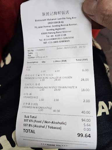 3rd red flag - So after finishing the fish, I went to pay the bill at the counter and at the same time I asked how heavy was the fish they will be billing me... I saw the bill and the lady said 1kg... I told her it's not possible that's 1kg. And she became defensive without even checking with the kitchen or check out the whole issue... She just snapped at me and said some nonsense which I still don't get it which was something like they deboned the fish..... And in my head, I still remember going thru the bones so wdf does she mean by they 去骨... I'm just thinking like you don't even bother to double triple check and understand the whole situation and double triple confirm if there was no human error and u just responded to me in a defensive manner, it must be you have already been scamming like this for a long time..