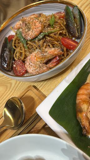 Read morei dont know what to say about this cafe. i feel like for a RM15++ price, your food need to be 15++ too. we ordered the chicken salted egg rice, nasi sambal udang, ice lemonade strawberry. chicken salted egg rice was okay, pinggan licin. the nasi sambal udang was very bad and dirty. the prawns were not cleaned. if you can see in the picture, the poop line is still there. itâs disgusting. they give you 4 prawns and all 4 are not clean. then the drink. dear god the drink. imagine the flu medicine you have to drink when you were little. yeah. that bad. it was like drinking medicine. overall, food and drink really bad. the environment, they were playing all sad and depressing songs. so yeah. if youâre depressed and dont care about your money, then come here. literally left the...