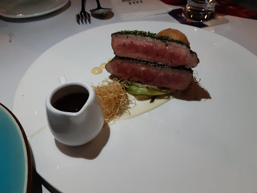 Last but not least, the wagyu M7. Exactly what I asked for,. Crusty seared on the outer and medium rare pinkish on the inside, incredible taste and finishing. Good quality, nice marbling and comes with a truffle potato ball. Great dish. Overall perfect dish.
