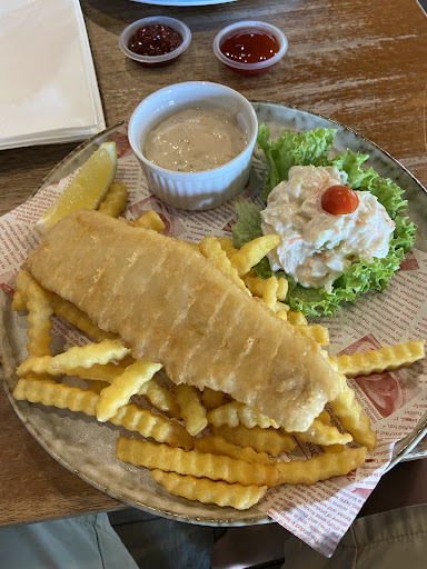We did not have a problem with the staff service and that is a welcoming sight. There isn’t a lot of cake variety so desserts aren’t the place’s strong suit. Food-wise, our fish&chips was alright but the noodles could be better.