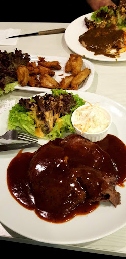 Subpar western cuisine. Poor service. Pricey and just underwhelming. Ambience is somewhat messy with a clash of interior designing. Making the dining experience somewhat irritating. TVs with nothing but still pictures displayed, showing either poor Internet connection or lack of entertainment providers. Fake vines on the wall just tend to drop while your eating. Constantly adding annoyance. Service was somewhat poor with the lack of trained staff. Had to bring my order from the table to the counter by myself and no one actually cared to wait on us. No recommendations or table waiting given. Not even a simple gesture to inform us that the order needs to be written and brought over to the counter. Food portions were just a mess. I've never seen a coleslaw made with just a few strands of carrot and cabbage which is not even a spoonful. Are vegetables really that expensive? Not to mention that the slaw has a somewhat sourish taste that is akin to turning bad? Chicken was fairly huge, battered and fried. Lacking proper seasoning thinking the sauce would have make up for the loss but yet it was just bland and unappetising. The sautéed mushrooms were for like burnt mushrooms? Dried, wrinkly and dark, with a bitter aftertaste. Sacrificing quality for quantity.