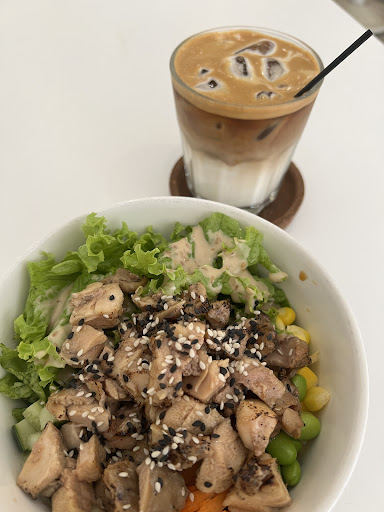 I ordered the grilled chicken rice bowl and a hazelnut flavoured latte. It was a healthy bowl with the right balance of flavours, protein, and vege. As for the latte, it was served with an elegant thin straw that allowed me to enjoy every sip of that coffee blend. It has a stronger roasted coffee flavour compared to many other cafes in a good way.