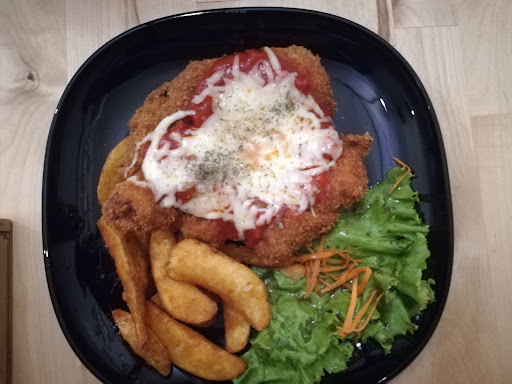 Cozy deco, moderate food price, with cakes and pastries, bakery with buns originally, now with western menu and coffee. Satisfying food and comfortable environment. Tried the chicken meals, chops and grilled. Served with potato wedges and salads. If only the staff could be more...