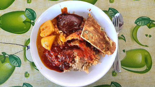 Read moreOne of my favorite places to eat this somewhat hard to find nasi tomato. The rice is fragrant and the choices of curries to go with it is amazing. Price is reasonable ~ I had nasi tomato (RM1.60), beef rendang (RM2), onion omelette (RM1) and two potatoes (RM0.60) plus limau ais RM1.20.