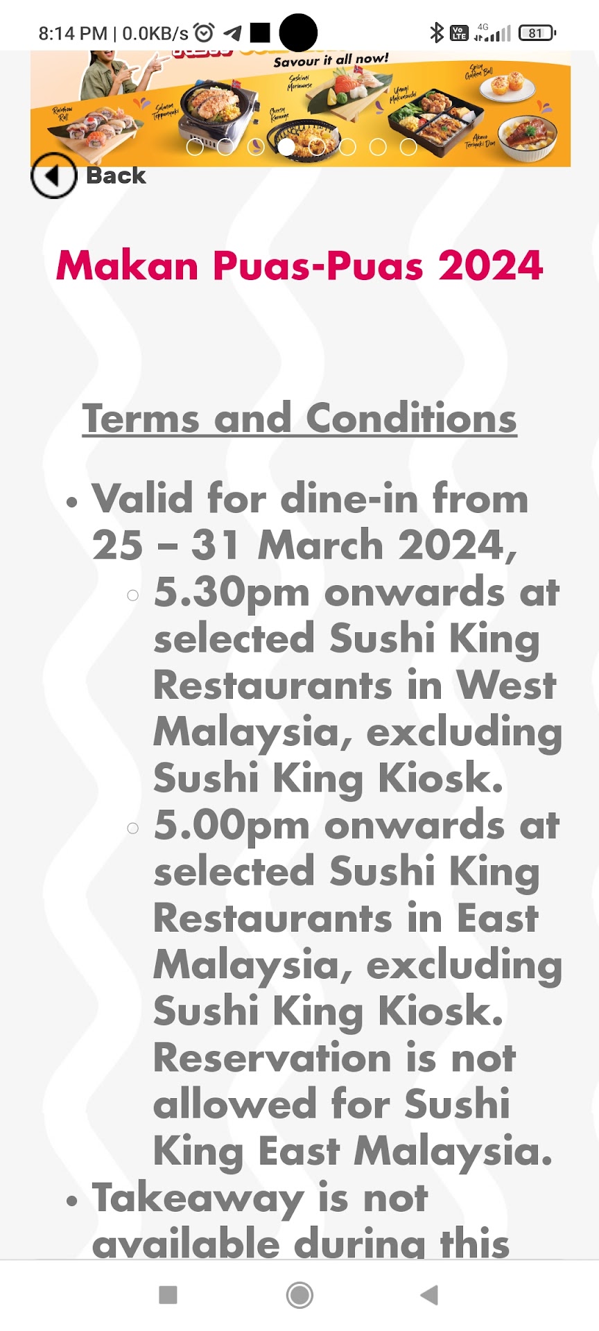 Read moreUpdate. We came on last day promo,makan puas puas. Everyone enjoy the foods And satisfied, although my husband not like sushi, but he can eat rice and noodles. The Staff so friendly. They apologised when cheese cake sold out. berbaloi datang semula. On previous visit, we came here 29/3 to celebrate birthday and Buka puasa. But Ended up, a sign was stand there.. "restaurant is full". We can't call them to ask bcoz, nombor Telefon rosak. We were asked to make a reservation first, and make payment on the spot. So, We booked which cost us RM 300++.mmg Berbaloi datang Kali kedua walaupun Dari Selama. Done update...