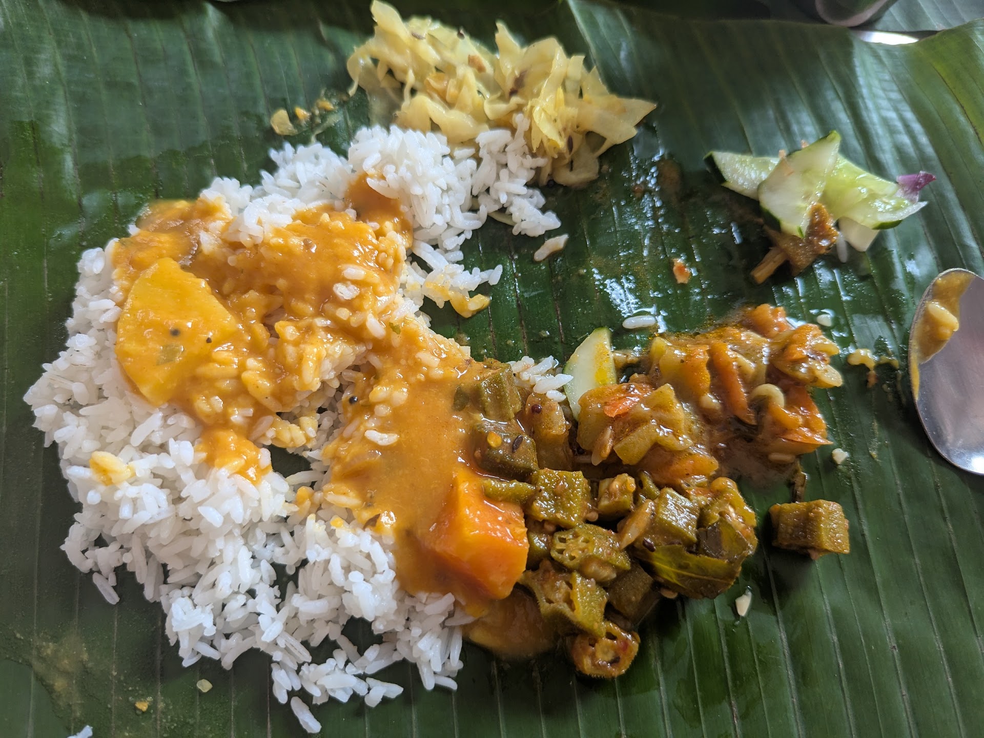 Read morePretty nice banana leaf for 9 MYR per person. If you get biryani sadhya then it's 12 MYR per person. The staff is kind and bubbly, and the space is clean and comfy. I liked their vege dahl that comes with banane leaf. It had hearty chunks of carrots and potatoes in it :) You get to choose among 2 curries - fish and chicken and that vege dahl. Or you can get a bit of each. Together with that set you also get 4 diff kinds of veggie dishes that are included. I went there twice and both days the choice was different which makes it interesting. I additionally got myself cauliflower that was marinated very well and what looked like dahl tadka. At the end, they bring out puff pastry and pandan pancake which I love. Sweets and savory finger food is all 1.5 MYR each. Very nice place to eat, esp if you're staying in the...