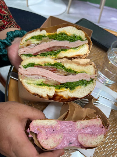 Delicious bagel for a really good price. Better than coff33 b3ans or Chr1st1n3's bakery. I'm pleasantly surprised. It's fluffy and soft on the inside but the outside have a nice crust to it. They toasted it so it's nice and warm. We tried blueberry cream cheese (lightly sweet) + seasalt bagel and ham&cheese + jalapeño cheese bagel and they were generously filled (as pictured). The iced latte (wt oat milk) is great too (for around RM13). The inside is aesthetically pleasing. They also sell their bagel frozen and some baking/cooking ingredients. We dined in and the bagel were wrapped in wax paper cut in half (convenient) and was in a cupboard container. You can get a lid at their self service counter if you want to take it away. The self service counter also have plain water, cutleries, some condiments. Service was friendly. You can pay using payment app. Parking was easy too. I came on a Saturday morning. A well...