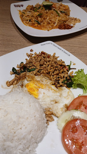 Came for lunch at 4+pm. Ordered: 1 pineapple fried rice + mini tomyam 1 pad ka prow 1 green curry chicken Jasmine green tea Black canyon coffee the drinks were okay. mini tom yam was served 3 mins after order.. weird it arrived before any drink? pineapple fried rice was wet & mushy. Taste horrible like eating some kind of fried porridge đ pad ka prow - the most ok one in the order but still on salty side green curry chicken was a joke. 6 pcs of chicken with 14 pieces of brinjal.. should be renamed âgreen curry brinjal â even the egg at the side tasted weird like powder đ§ staff need to be retrained.. or at least supervised. The robot does a better job at serving people. total was RM62.15. I had paid RM102.15, thus the change should be simply RM40.. took the staff 10 minutes to count the change since he was hesitant to take the coins which i placed on the counter. He kept recounting⌠when I told him the change is RM40 he just continued to give the incorrect amt. luckily the manager was there and she corrected the mistake.. still 10 mins to calculate with a auto-counting cash register shows the standard of staff here.
