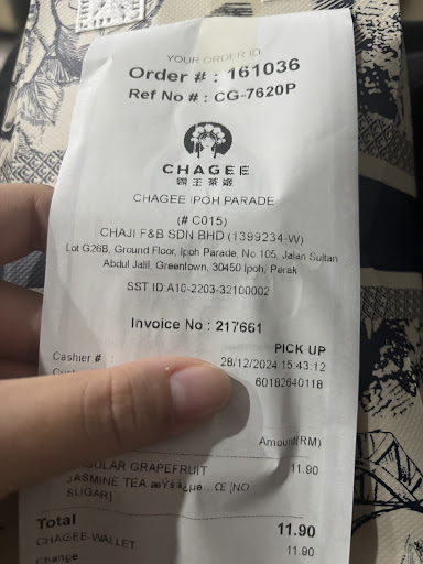 Read moreI had a terrible experience at Chagee Ipoh Parade. I went there to buy drinks for my family, only to be rejected when trying to make a purchase at the counter. The employee directed me to a QR code and insisted I place my order through it. I tried twice, but the system failed both times.