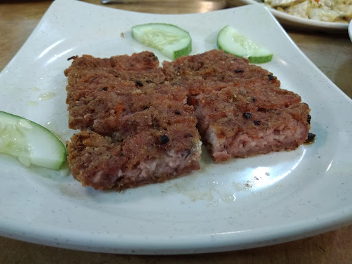 One of the traditional style Chinese restaurants which can consistently serve wonderful food to satisfy your taste palates. On our recent trip, we ordered fried 'roasted pork' + white rice, fried rice and fried yee min. Added on a dish of stir-fried vegetable shoots. Now when the food is cooked with enough wok-hei (heat from the wok) and authentic ingredients + right flavourings (no overdose) are used, the food outcome is just appetising drawing praises from discerning food lovers. The roasted pork being fried (meaning pork cooked a 2nd time) to a sweet flavour is crispy and tasty. Fried rice is perfect, not too oily, good! Thumbs-up to the yee min and vegetable shoots too. Price of food is reasonable. Will go back for more because still quite a number of dishes not tried yet. Menu of food is simply written on the white tiled wall (short list only, incomplete one). More menu details are updated orally by the waiter or owner (whoever is free) to you if you want to ask. That's what I call traditional style of management of an old restaurant. Wait, ... now some hygiene aspects: (1) Why would the owner let a pet dog rest on a chair at one corner at the back of the restaurant? Some customers and the waiters could not resist the temptation to pet the cute, tame dog as they walk past. Good? (2) There are a few minor cracks on the tiles of the wall near the tables where food is served. Insects like ants and cockroaches would...