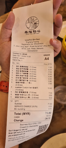Read moreNot recommended if you are looking for premium quality handmade freshly made Ipoh standard dimsum. Its taste like disappointed Frozen dimsum supply by factory. chee chiong fun not smooth .prawn dumpling totally disaster, prawn mushy and taste weirdly. And char sao pao looks exactly like those Penang dimsum restarant. That's fully comllete close up pao . Premium real freshly hand made suppose can see the cracks shows savoury juice. Dissapointed and dare not wanted to try those factory mades pao at all. we was there 8am+ public holiday plenty vacant table with no crowds yet they told us porridge and egg tart all sold out. How many of you will believe such answer? I guess must be failed supplied by process factory. May be no crowded Services not bad and the ipoh kopi ice( most dimsum restaurant do serves...
