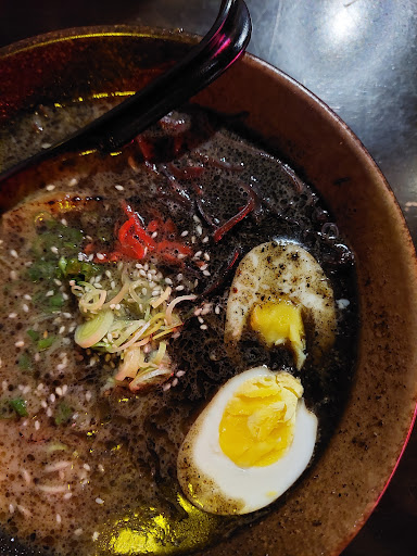Read moreThe service and atmosphere is good but the food was not up to my expectations. I ordered black garlic ramen however there are no garlic taste except oily feel. The broth also kinda disappointment as my expectations is the broth should be creamy and full of flavor but I only taste salty. I'm sorry to say but it remind me of Nissin ramen instead. The ginger should be set aside instead directly put into the soup. The edamame also kinda not up to my expectations, it should be cook in the salt water instead of putting the salt on the outside which the overall experience is just very salty. The cheesecake also just taste meh. Although most of the food kinda let down, the gyoza is good and the dipping sauce which using the pomelo is very refreshing....