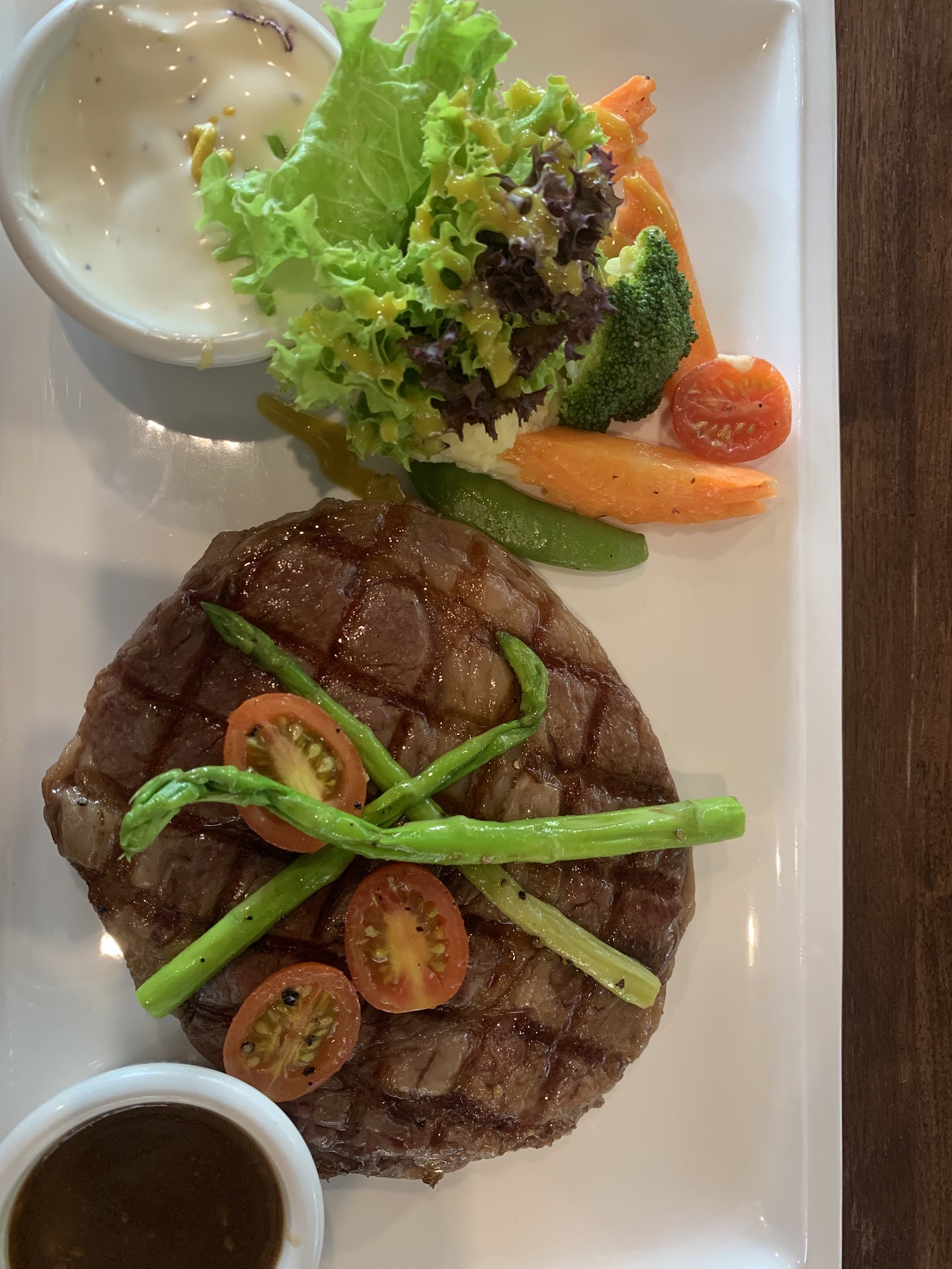 Read moreA very disappointing lunch service. We ordered ribeye wagyu beef and the chicken schnitzel sandwich as mains with mushroom soup & garlic bread for starters. After about 10 minutes, the beef was served but we were informed that mushroom soup and garlic bread not available. Fine…but then it took another 15 minutes before the chicken sandwich arrived (after prompting the server). The chicken was barely coated with breadcrumbs and dry. The beef (cooked medium rare) was passable and hardly any flavour to be called wagyu. The hygiene of the restaurant is a bit sus with me having to wave the fly away and jostling with few wasps to use the self serve drinks dispenser. To complete my not so wonderful lunch , after I made the payment I was handed a phone to enter my phone number without any explanation. Only when I questioned why was my telephone number needed that I was told it was for points . Data privacy be damned. I accept that sometimes you won’t find the flavour of food at restaurant to be great but the fact that the shoddy service by the kitchen is unacceptable especially when there was only one other table being occupied. Me’nate? I think Me’NOT COMING BACK AGAIN!!!