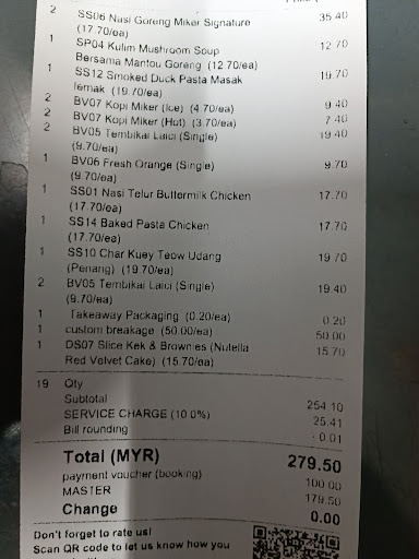 Total rm179 including 10% of service charge.for an rm180 meal,it was really overpriced with the taste we get.thats all.