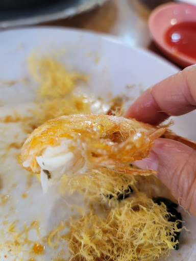1] fried shelled mantis shrimp ... salted egg ... tasty but way too hard ... a fail