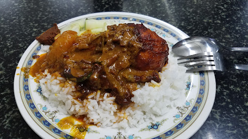 EDIT changed 4star to 1 star: returned for dinner again today but upon paying our bill we got quite a shock. The bill today was RM32!! Twice the price from last night and so expensive for nasi kandar! The large man said the two pieces of chicken was RM17!! because it was local....we explained to him it had less meat and the chef just gave it to us. He said no, it was the chef and OUR FAULT! We shouldn't have chose it...and we explained again we don't speak the language and we asked the chef for the same spicy chicken like last night, we didn't choose anything. He then continued to yell at his chef infront of everyone and told us he isn't cheating us of our money. We told him we are willing to pay for the cheaper price chicken and he said no, and told us to leave!! So we left, and will never be back. The rest of the staff are nice but that guy, who is probably the owner, needs to learn what customer service is. Rudest person we met so far in Malaysia. .......... Delicious nasi kandar! I actually liked this restaurant better than the busy nasi ganja restoran. The curry sauce and chicken has more flavor and the food tastes cleaner. The restaurant itself is also cleaner. The staff is very helpful. You also get a piece of potato which I enjoyed. Another huge plus is the restaurant is open late! The teh ais is good. I will be back to try the...