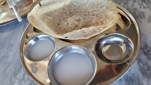 Found the best place in town for Indian breakfast. It is located by the school and easy parking. It was crowded during breakfast. Many varieties of food, including some local delicacies. In two visits, we have tried thosai, paper thosai, rawa thosai, masala thosai, puri, roti canai and roti telur bawang. Everything was good. The curries and coconut chutney was thick and flavourful. Sweet apam was not with the moist center which I prefer. Vadai was soft and tasty. Ragi puttu was good but too big a piece for one person. Beverages were so so. Bru coffee was diluted. Service was okay. Miscommunication when taking orders. By 10 am, some dishes were already served. Must try the banana leaf...