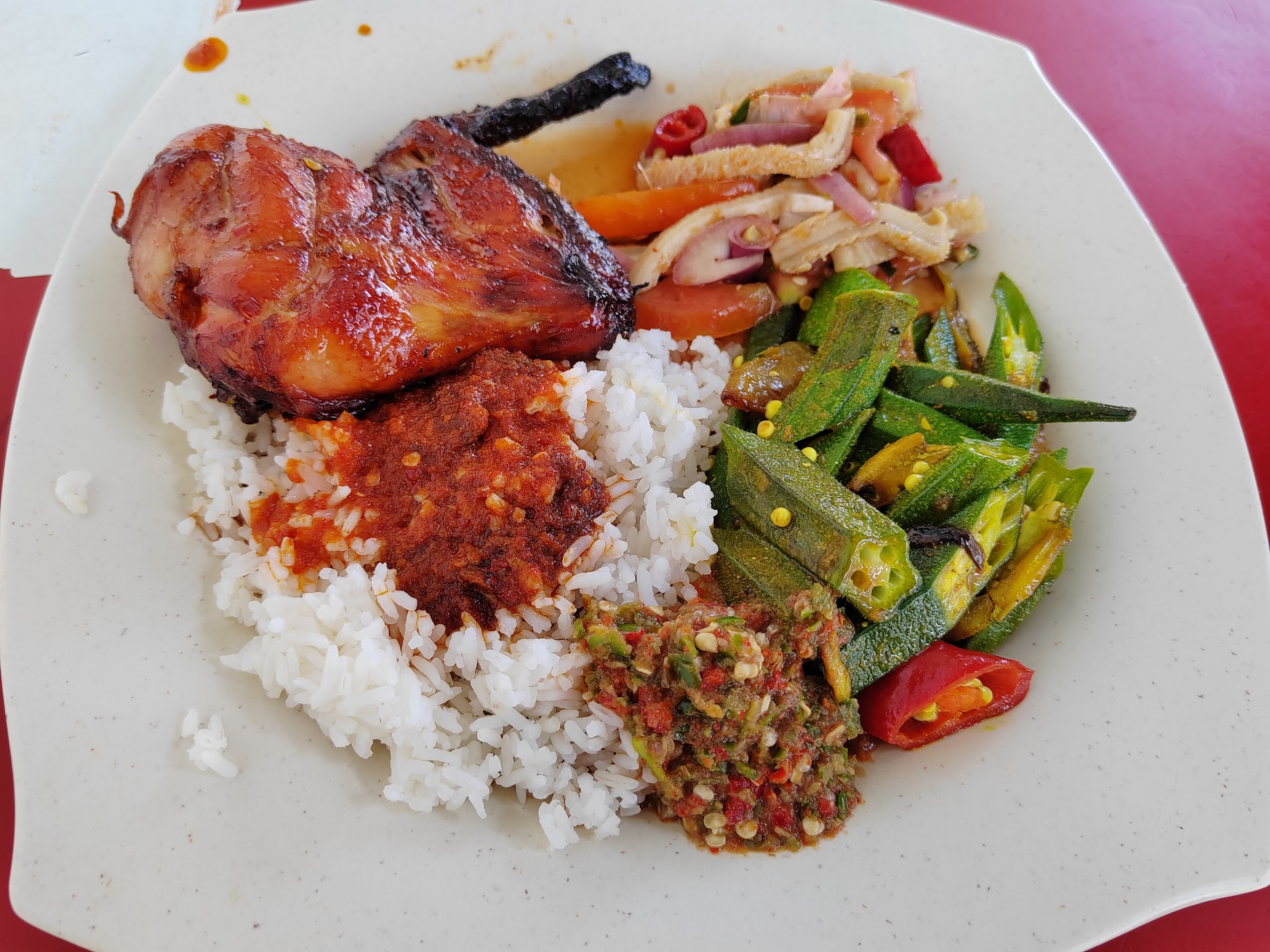 Read moreI feel the rating doesn't do this restaurant justice as they are worth more than 3.8 at the time of writing. They almost got the highest rating save for the inconsistency of the bbq chicken. On my first visit, the chicken had just the perfect marinade on top of being perfectly smoked while the subsequent visit it's much soggier on the outer layer without the accompanying smokiness nor the smokey paprika taste. The beef tripe in lime juice was good while the vege, sambal and rice were quite the standard fare. Quite a number of dishes on display. However, their bbq fish and sauces section needs some handling of the flies.