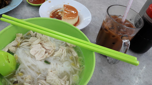 For main meals, there are only roughly 4 stalls but only 2 open so I order gai si hor fun and ribs noodle. The gai si hor fun left me confuse as the soup is nothing like a hor fun soup. It's just plain MSG soup for me. The shredded chicken is a little too big so it's like chicken breast but randomly sliced. The hor fun is a little too soft to be expected like a good bowl of gai si hor fun that Ipoh should have. The only good thing is it has huge portion for only RM6. The ribs noodle is a little tasteless except for the spring onion oil fragrant. The ice white coffee is a little too sweet for me but I can still taste the aroma and smoothness of the coffee. The good thing is the caramel pudding only cost RM3 which is the cheapest I can find around here and it taste good. The texture has a nice consistency of creaminess and the sweetness is just right.