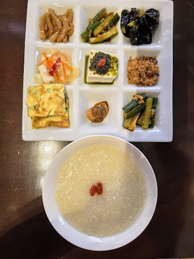 The porridge tasted clean and healthy on its own, but the condiments really elevated the dish, especially the tofu topped with a green sauce. That plain tofu suddenly became super tasty and flavourful.
