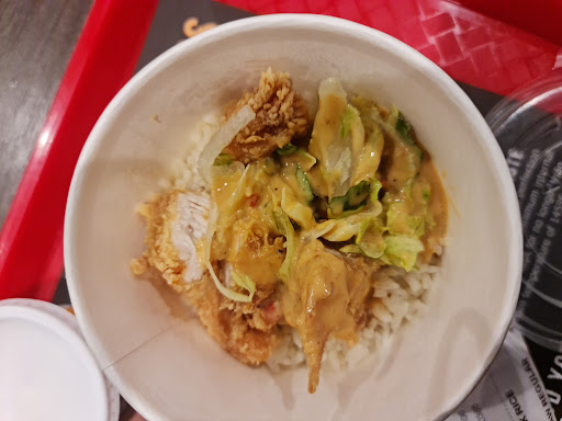 I am not satisfied with this restaurant. Sorry that i couldn't give any pictures but i'll do my best with descriptions. Why i am not satisfied : thick flour on the chicken , which doesn't suit my palate as i would like tender chicken and not a mouthful of flour order number not displayed right at the front , you have to go round to another counter at the other side of the restaurant which i find inconvenient baby chairs displayed right beside order counter , if there were large number of people gathering around the order counter , someone could trip , i barely tripped just now . getting orders wrong , i know this could happen anytime to tired workers but it's not good on a first impression ( we were missing one order of coffee ) food not really filling , my family ordered a five set combo with five chickens , one coleslaw , one large fries ( weren't really that large ) and four drinks , still were left hungry. We could've ordered more , but the food wasn't that tasty. chicken that was supposed to be spicy wasn't that spicy , barely could taste it chicken was considerably small , barely filling