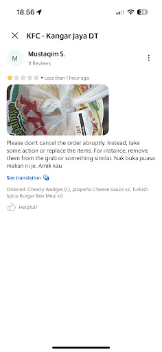 Read morePlease teach your workers about taking order from customers. The behavior of the staff needs to be maintained. One of the staff took the wrong order, did not repeat the food order list to the customer, and then blamed the customer. This careless attitude makes customers dislike this KFC branch, making a frown at customer when customer asking for another order, but i canceled it anyway because of this staff. But after that, the staff stare at me and making...