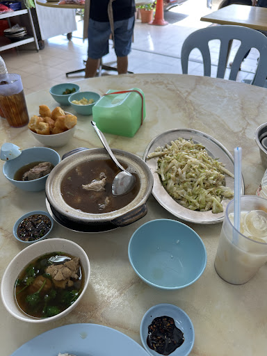 First time to this branch . Used to go to their other branches but no lala in that place . Boss is friendly . Ordered my fav fried lala , fried fish head , salted veg n bakuteh soup with soft bone) Food is nice but must order min order even for 2 pax n the portion is too big for 2 pax but no choice . Tapau the pork trotter n reached home found that only few pieces n cost RM39.00 (could be pork price increase). Our total bill inclusive of the tapau for 2 pax with a glass of Chinese tea - RM118.50. Food is nice n we tapau the fish head (almost 1/2 plate couldn’t finish) , salted veg also couldn’t finish n tapau . Lala v big plate n just tried to finish it . Will go if we have 3-4 pax unless they take order of smaller...