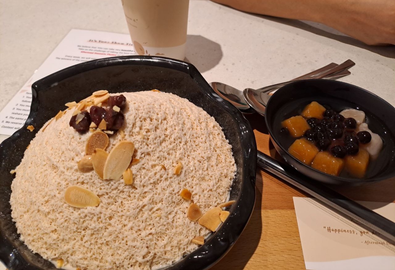 Parking is a headache and the second issue was the entrance queue on most nights. The ambience is noisy but comfortable and those shaved ice dishes i tried (matcha, iron lady, milo) were all quite tasty and came quite fast. Cold drinks like brown sugar milk were below average in my opinion. No complimentary drinking water.