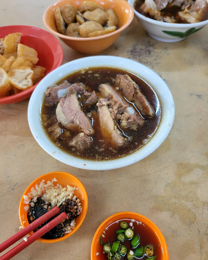 Read moreOne of the better Bah Kut Teh in PJ for sure. We arrived just before lunch at 12 (need to wait a while once lunch time starts as it is usually full during lunch time) and ordered the single order bowl with “yat chi kuat” (literally one piece bone, but probably a part of the higher thigh, as I have been informed) – this is all meat, no fat. The other was “yin kuat” (equivalent to floating ribs in human?), so it was soft and with some fat. The rice is either white or “yau fun” oily rice. A small saucer of chopped garlic is provided and one should add the black sauce to it to give the garlic a caramel taste, goes very well with the rice and meat. Order the “yow char kwai” and “tow fu pok” too. It is RM2 a bowl. You can ask for more soup. No questions asked unlike some places which “discourage” this or even charge for it. The soup is not too overpowering, with just the right tone of the various herbs and the meat just about melts in your mouth, depending on your choice of cuts or if you prefer, a fat portion with the meat. Just tell the friendly staff your choice and he will recommend the cut/s. The staff serving the place are super friendly and multi lingual so even if you do not speak any of the Chinese dialects, you will have no problems ordering. Mid-way through our lunch, a elderly Indian lady took a seat next to us and ordered a single order (clay pot version, which has some vege bowl inside – never my choice as I do not like the soup “adulterated” by other flavours). She was alone and that sorts of tells you lots about the place. My go to place for a “bah kut teh” fix without having to...
